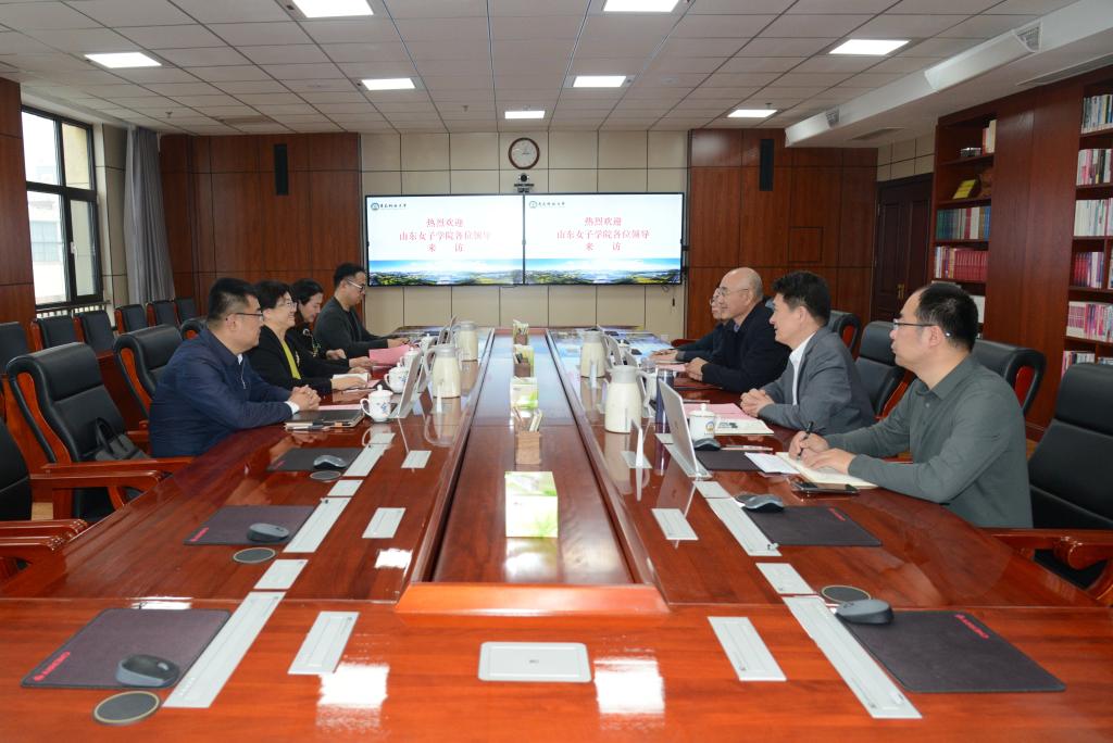 陈连军介绍了学校发展历程、学科建设、人才培养、科技创新、成果转化以及发展战略目标定位等有关情况。李缨介绍了山东女子学院的历史沿革、学科特色、人才引进、科学研究等方面基本情况。双方围绕学科专业建设、教育教学改革、学科专业布局优化调整、人才培养质量提升等方面进行了交流研讨。