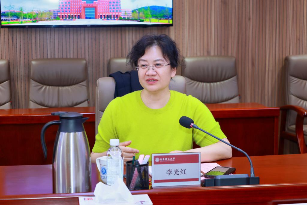 李光红对青岛科技大学的热情接待表示感谢,对青岛科技大学近年来在服务国家战略和地方经济社会发展、高水平科技创新、高质量开放办学等方面取得的成绩给予高度评价,并介绍了山东女子学院的办学历史、办学特色、教育教学等工作情况。她表示,双方具有良好的合作基础,希望双方进一步加强交流、增进友谊,推动优势互补、合作共赢,共同促进两校各项事业高质量发展。