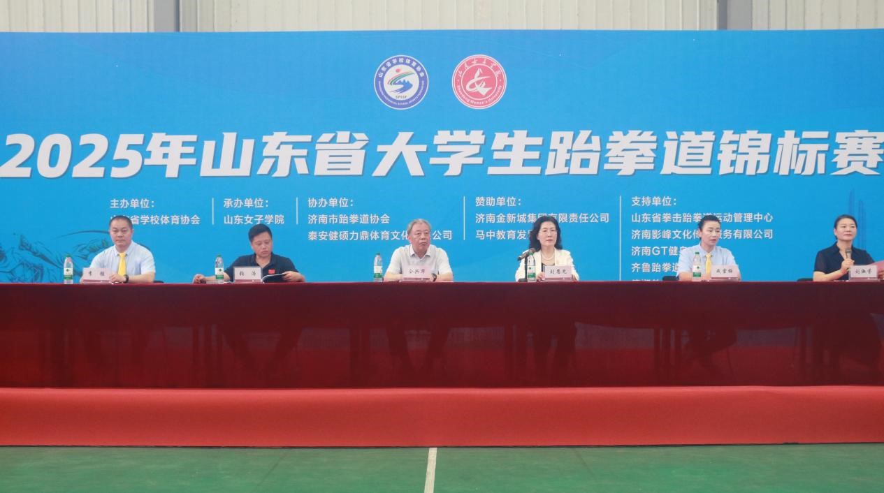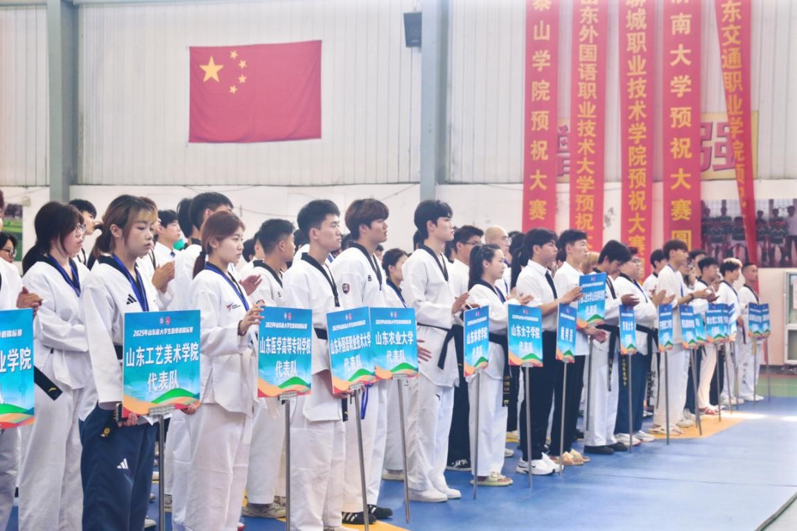 6月7日,2025年山东省大学生跆拳道锦标赛在学校拉开帷幕。本次赛事由山东省学校体育协会主办,学校承办,是山东省首次举办的大学生跆拳道项目比赛,吸引全省21所高校180余高校跆拳道精英同场竞技。山东省学校体育协会会长、山东大学原党委副书记仝兴华,学校副校长刘恩允,济南市跆拳道协会等领导出席开幕式。开幕式由学校体育教学部负责人主持。