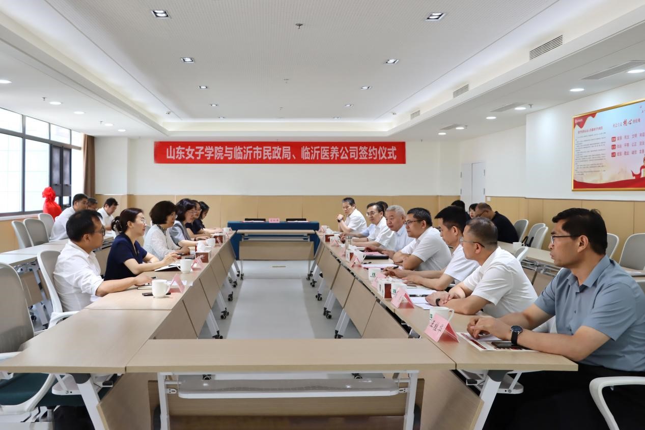在临沂医养管理有限公司,吕晓黎一行与临沂市民政局、临沂城投集团开展座谈交流。王映海对吕晓黎一行来访表示热烈欢迎,详细介绍了临沂市近年来在健康养老事业和产业等方面发展的基本情况及取得的成绩。吕晓黎对临沂市的热情接待表示感谢,她希望在健康养老、儿童托育等领域加强合作,共同探索健康养老事业和产业发展的新路径。刘恩允重点介绍了学校的师资队伍、学科建设、专业特色、人才培养等情况。随后,双方签署了战略合作协议。