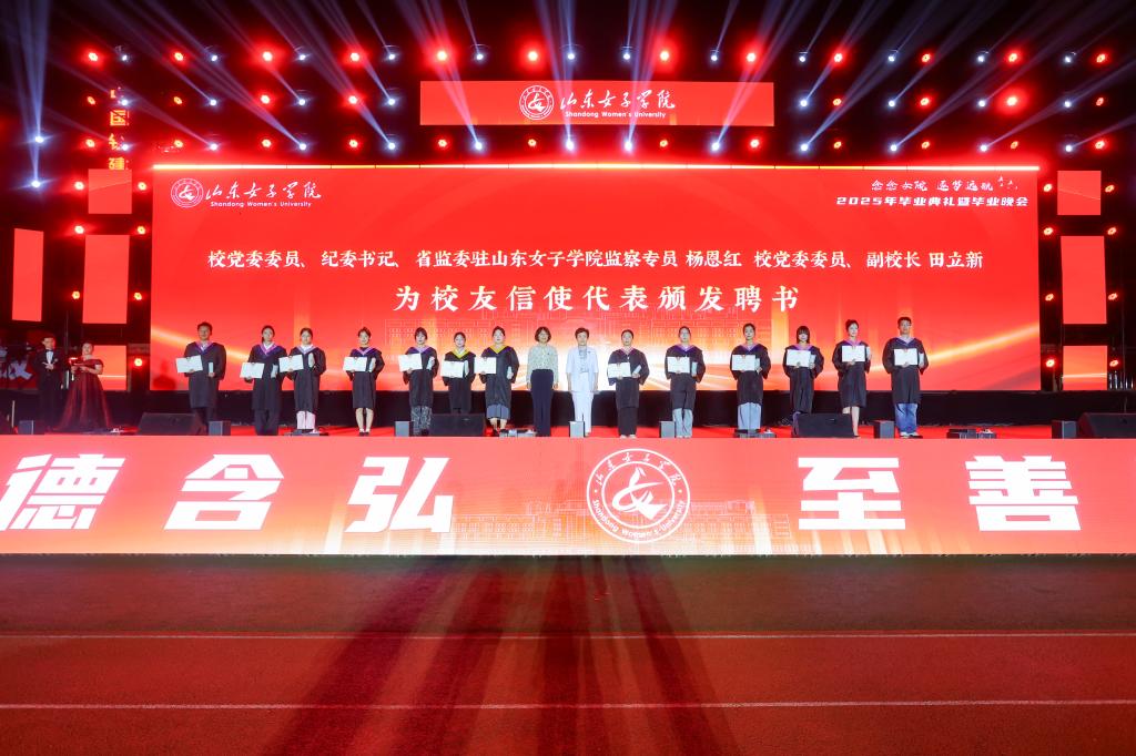 党委委员、纪委书记、省监委驻山东女子学院监察专员杨恩红,党委委员、副校长田立新为校友信使颁发证书。