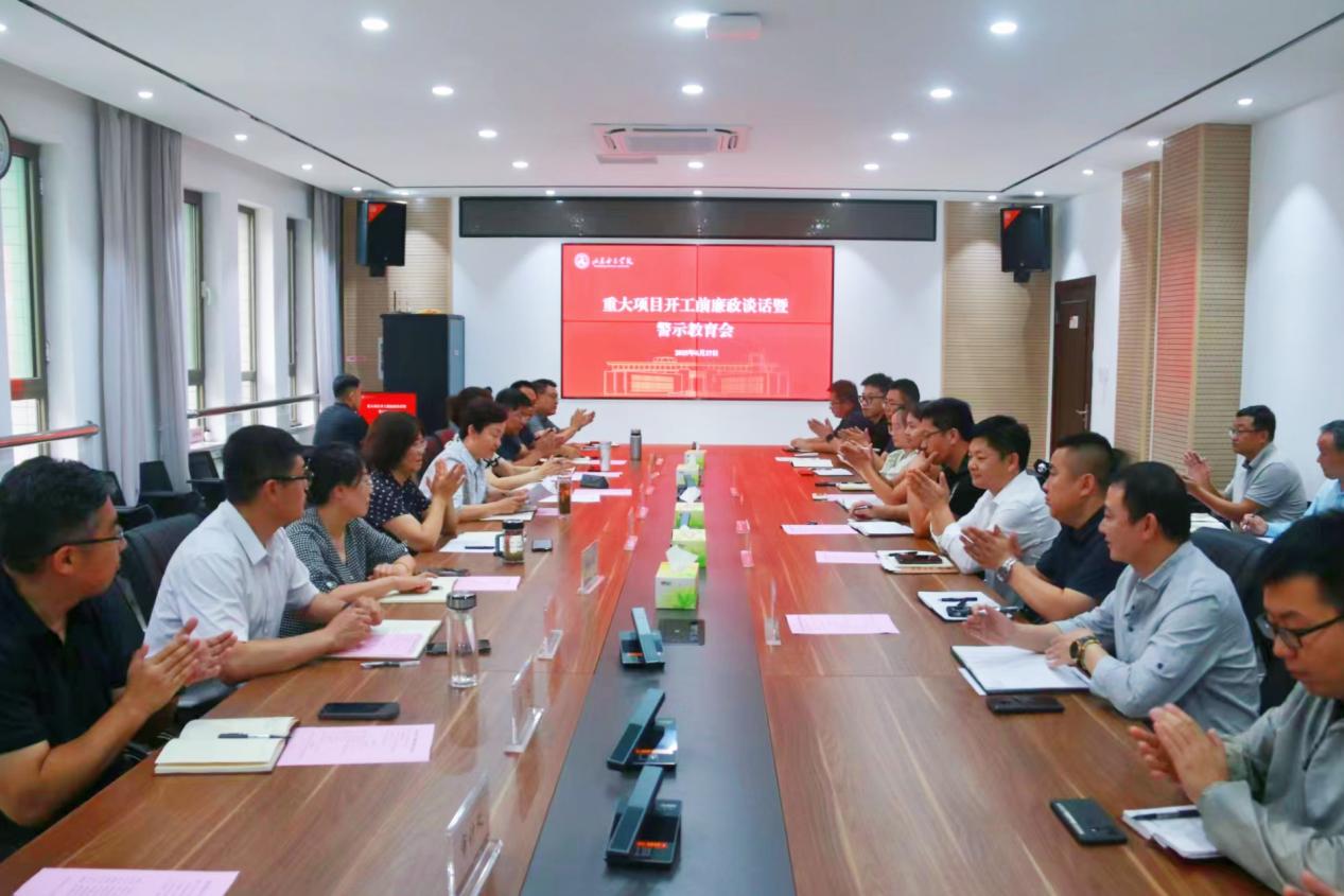 6月27日上午,学校召开重大项目开工前廉政谈话暨警示教育会。学校党委委员、纪委书记、监察专员杨恩红、党委委员、副校长田立新出席会议。学校基建工作领导小组成员、基建处、资产管理处、审计处有关人员,以及工程总承包单位、监理公司、项目招标代理机构和造价咨询公司代表参加会议。会议由田立新主持。