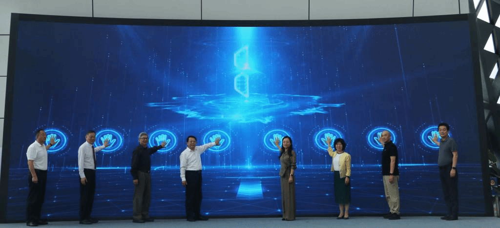 与会领导嘉宾张连三、李鹏、吕晓黎、尹国桥、张宜、吴波、徐琳和艺术家代表、台北海洋科技大学原副校长陈合成教授共同启动作品展。