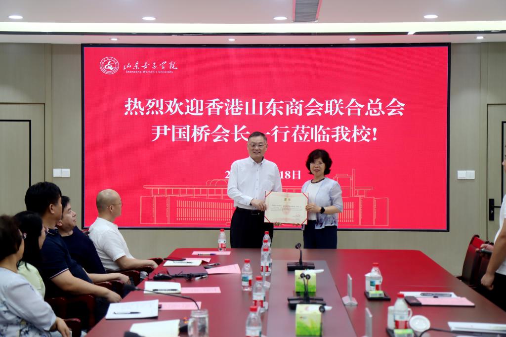 尹国桥对学校的热情接待表示感谢,并详细介绍了香港山东商会联合总会的基本情况。他指出,受聘为山东女子学院客座教授,将充分发挥香港山东商会联合总会的桥梁纽带作用与联络服务职能,期待双方以此次交流为契机,整合优势资源,拓宽交流渠道,积极推动多领域的交流合作,共同开创合作共赢新局面。