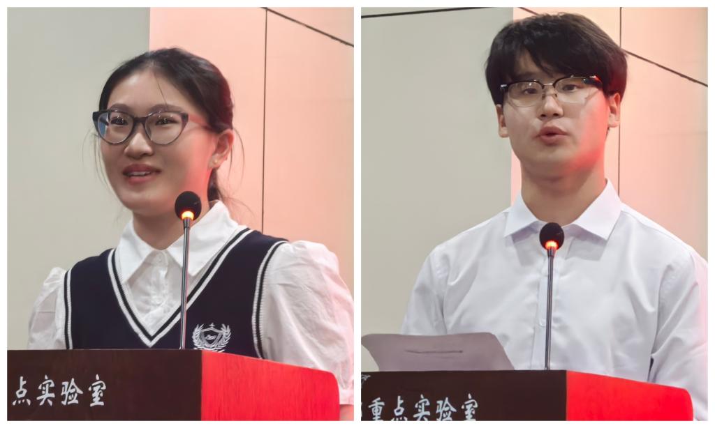 2022级联合培养学生代表杨璇冰对一年来的交流学习生活进行了经验分享。2023级联合培养学生代表贾大锟对即将到来的交流学习生活表达了热切期盼。