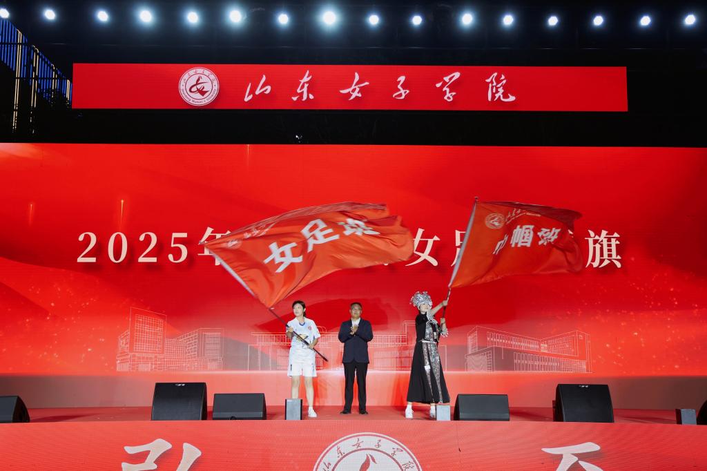 党委副书记龙希利为学校特色班级“巾帼班”“女足班”授班旗。今年学校依托学前教育专业设立“女足班”,招收25名热爱幼教并具足球特长的学生,进一步拓展复合型人才培养路径。