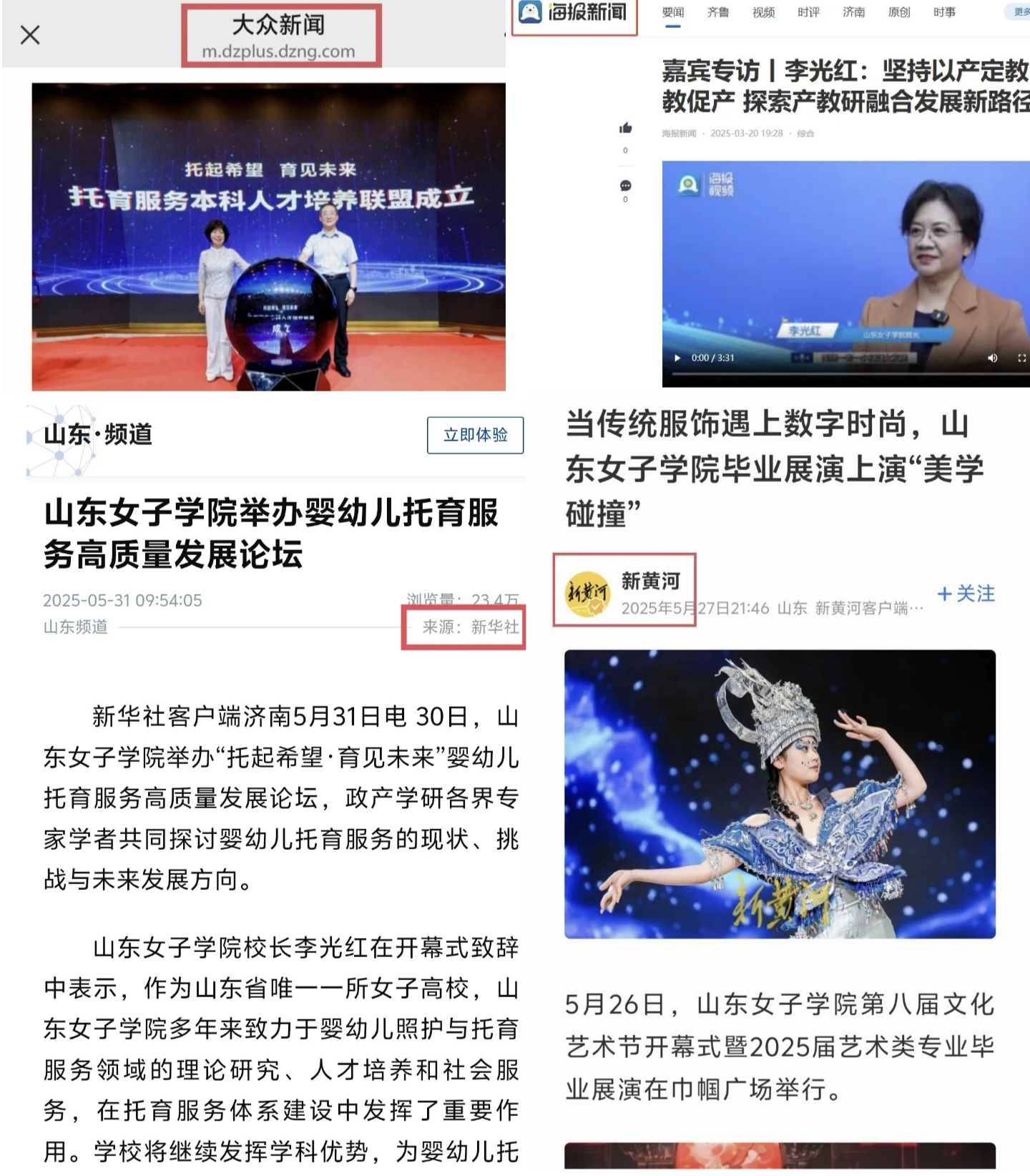 教育学院主办婴幼儿托育服务高质量发展论坛、数据科学与计算机学院主办低空经济产业研究院成立仪式暨山东低空经济发展论坛、继续教育学院承办2025国际产教研融合发展对接会,以及艺术设计学院、音乐学院的毕业作品展等重点活动,邀请中央级、省市主流媒体到场采访报道,策划推出了一大批优质的新闻报道作品。