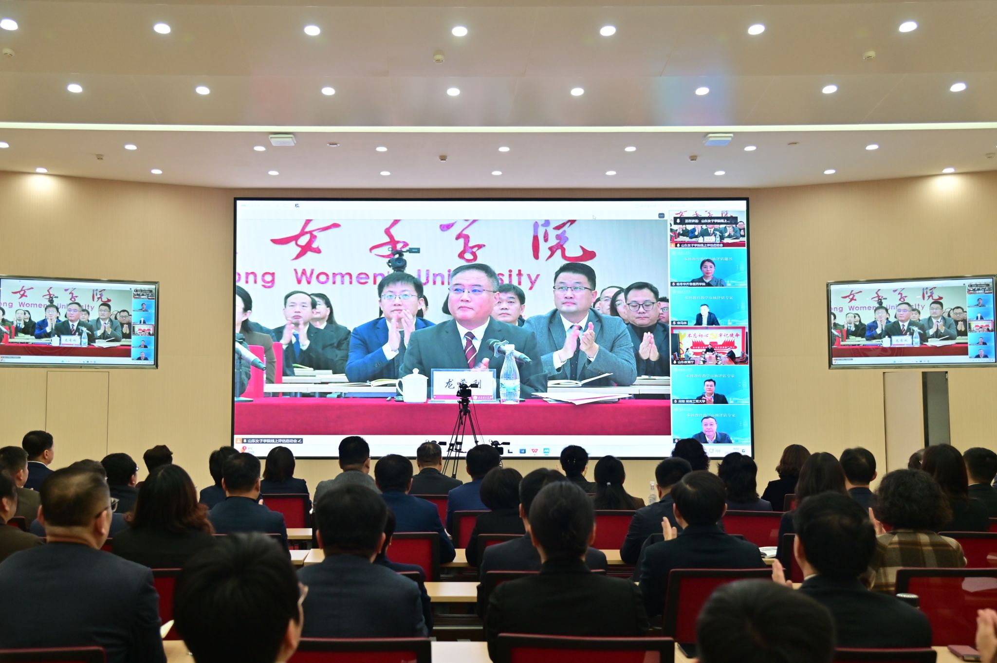 学校党委副书记、校长李光红代表学校向出席会议的各位专家、领导表示热烈欢迎和诚挚感谢。她从学校历史沿革、特色思政育人格局构建、学科专业结构优化调整、人才培养模式创新等方面介绍了近年来学校改革发展情况。她表示,本科教育教学审核评估既是落实党中央关于教育评价改革部署的重要举措,也是对学校本科教育教学工作的问诊把脉和全面体检,更是学校凝聚共识、深化改革的重要契机。学校将认真落实专家组和教育厅各项工作要求,以积极主动的迎评态度、务实高效的工作作风、饱满昂扬的精神状态,全面、系统地总结和展示本科教育教学工作,认真听取各位专家的宝贵意见,持续深化教育教学改革,回答好“教育强国、教育强省、女院何为”这一时代命题。