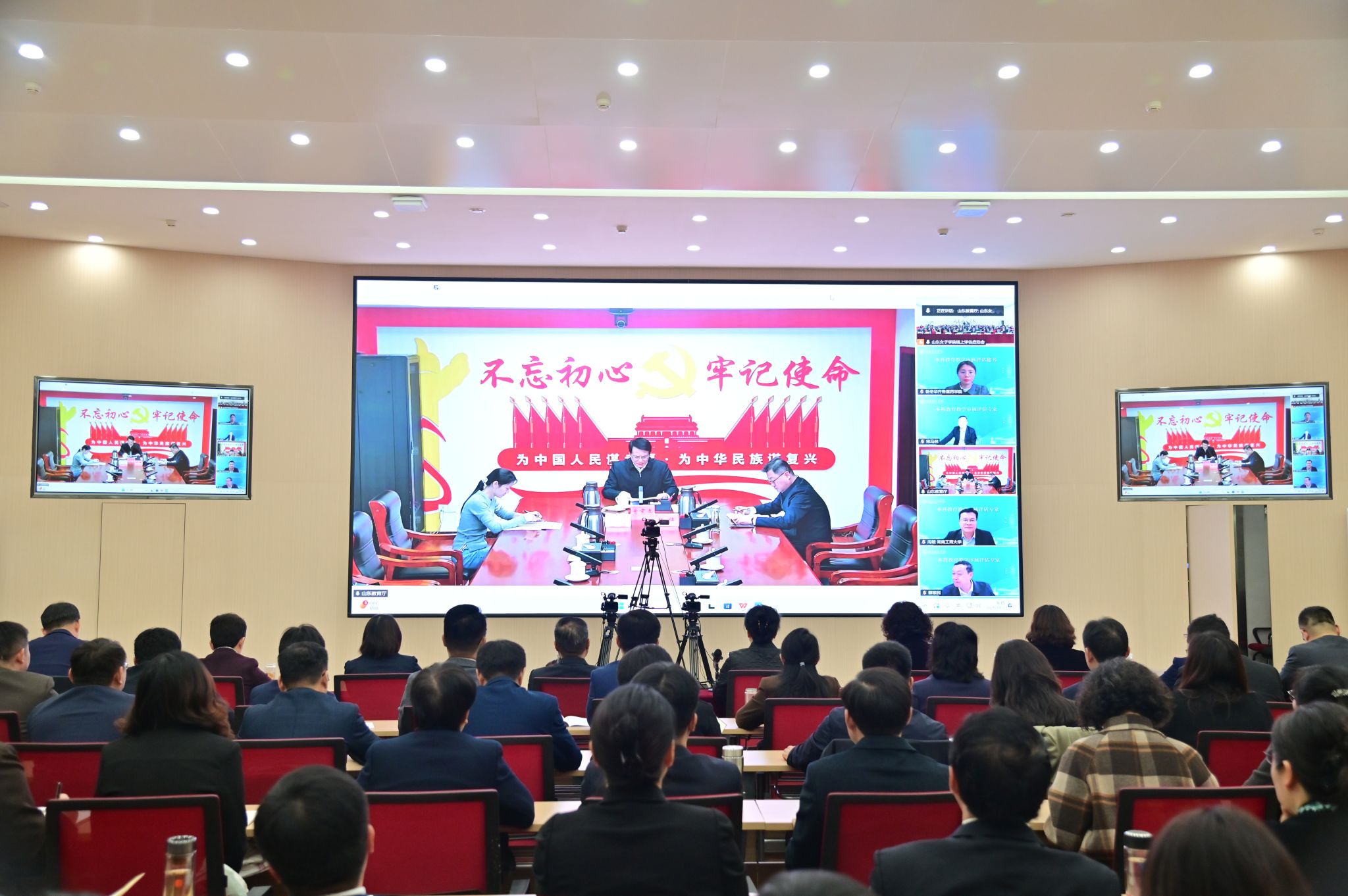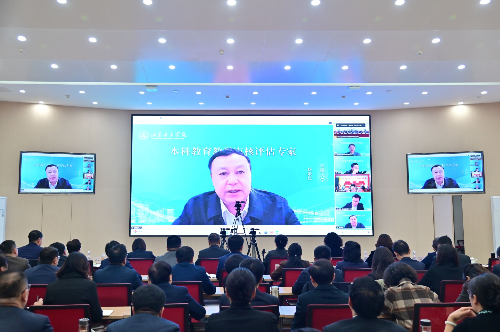 教育部本科教育教学审核评估专家组组长、安徽大学原党委书记蔡敬民教授,专家组副组长、安徽财经大学副校长宋马林教授,专家组全体成员,项目管理员,秘书组成员,山东省教育厅高等教育处处长、一级调研员曾宪文,省教育厅高等教育处副处长、二级调研员魏伟,山东教育社教育评估与质量监测中心干部张英慧等线上出席会议。全体在校校领导出席会议。会议由学校党委副书记龙希利主持。