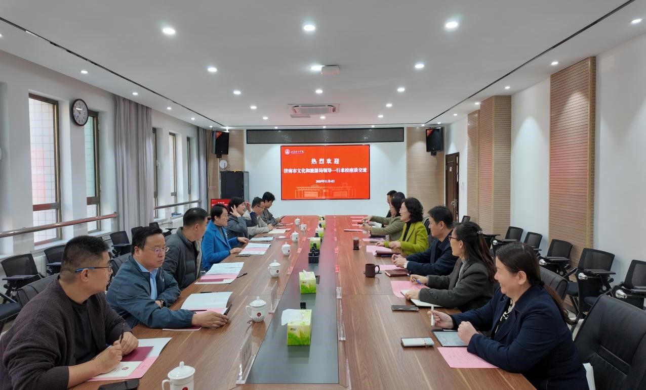 11月4日,济南市文化和旅游局党组成员、副局长,市广播电视局副局长孙静,济南市文化和旅游局广电管理处处长王梓及济南市网络视听行业协会会长一行来访,就人才培养、校地协同、校企合作、社会服务等开展交流座谈。副校长刘恩允出席座谈会,科研处、教务处、合作发展处、传媒学院负责同志参加座谈。
