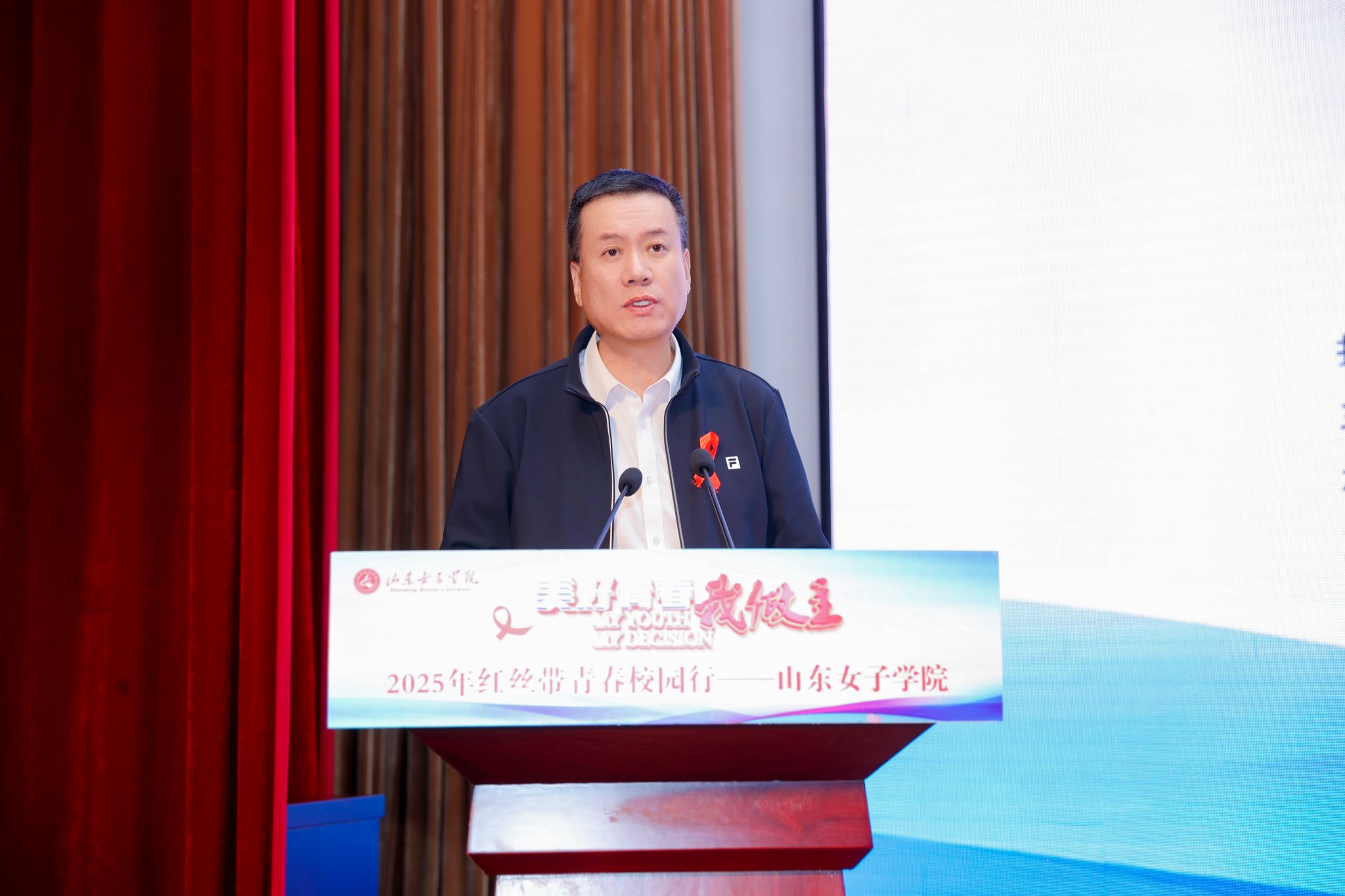 11月20日下午,“美好青春我做主”红丝带青春校园行活动在山东女子学院报告厅举行。红丝带健康大使、央视资深媒体人白岩松,中国性病艾滋病防治协会副会长兼秘书长王新伦,首都医科大学附属北京佑安医院性病艾滋病门诊主任孙丽君等行业专家与学者齐聚现场。山东省卫生健康委二级巡视员、山东省公共健康与艾滋病防治协会会长陈国锋,山东省疾病预防控制局副局长王海明,学校领导李光红、龙希利、田立新以及来自省市区的卫健委、疾病防控中心、性病艾滋病防治协会、省教育厅体育卫生与艺术教育处、12所兄弟院校相关部门负责人参加活动。师生代表共700余人现场参与活动,线上8000余人同步观看,收获点赞近3万次。