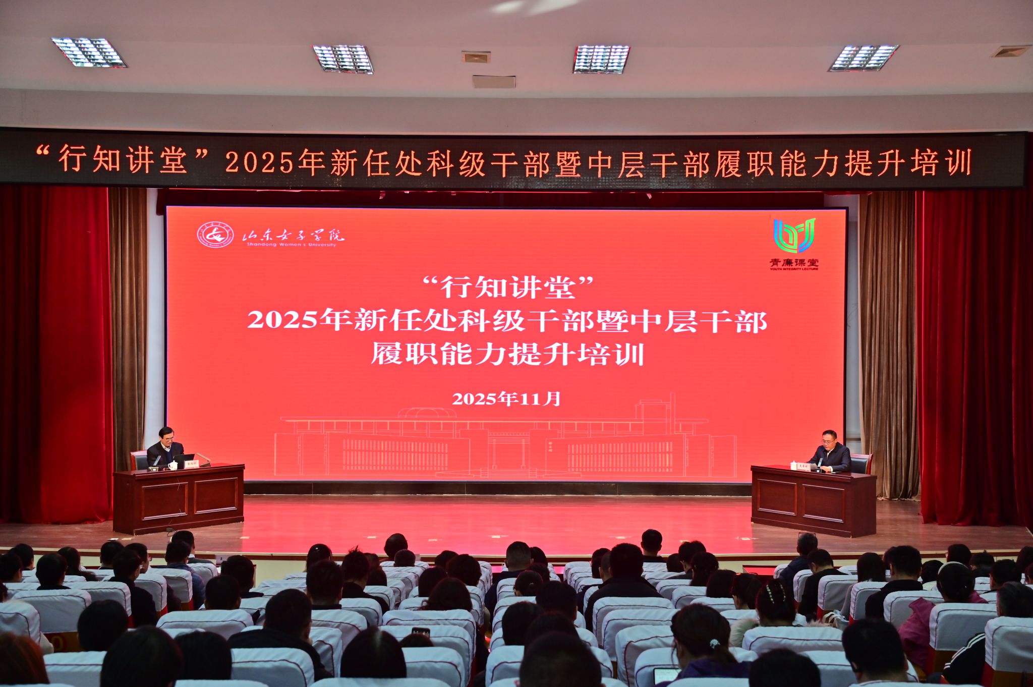 11月28日下午,学校在图书馆二楼报告厅举办“行知讲堂”——新任处科级干部暨中层干部履职能力提升培训,邀请对外经济贸易大学一级教授、国家二级教授彭向刚作专题报告。学校党委副书记龙希利主持会议并讲话,全体处科级干部参加培训。