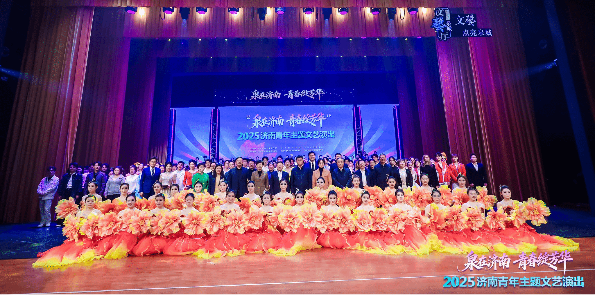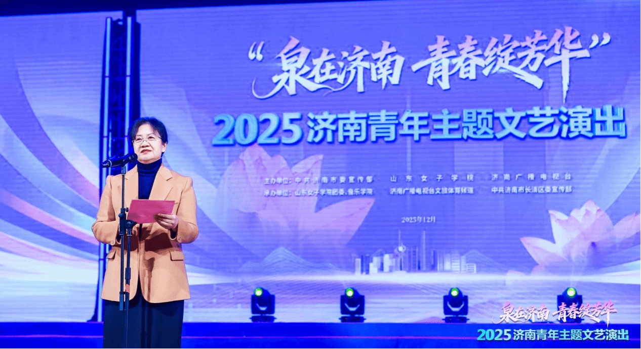 12月5日下午,由中共济南市委宣传部、山东女子学院、济南广播电视台联合主办,山东女子学院团委、音乐学院、济南广播电视台文旅体育频道、中共济南市长清区委宣传部承办的“泉在济南 青春绽芳华”2025济南青年主题文艺演出在长清大剧院精彩上演。省委宣传部文艺处处长、二级巡视员尹永海,省关工委副主任、省纪委监委驻省委组织部纪检组原组长、一级巡视员于景涛,省教育厅副厅长孙晓筠,省妇联原副主席赵红,省演艺集团董事长解东;市委常委、宣传部部长、市委教育工委书记马保岭,市妇联党组书记、主席田迎,市委党史研究院院长史宏捷,市文联党组书记、副主席文东河;学校党委副书记、校长李光红,党委副书记龙希利,齐鲁工业大学(省科学院)党委委员、副校长(副院长)乔丙武,区委副书记、区长王士强等省、市、区相关部门领导,驻济高校代表及各界青年代表共同观看了演出。