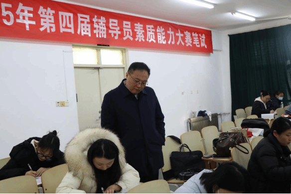 校党委副书记龙希利现场巡考。考场秩序井然,参赛辅导员沉着应考,展现学校辅导员良好精神风貌和严明纪律作风。学校高度重视此次测试,学生处全程监考以保障考试公平规范。