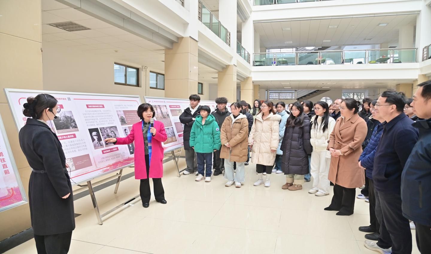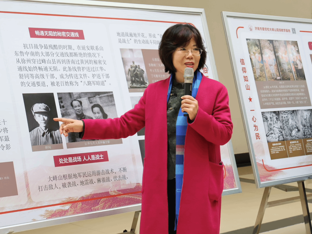 课堂现场,与课程内容相辅相成的大峰山革命根据地红色主题展览同步开展,一块块图文并茂的展板整齐陈列,以时间为脉络、以事迹为核心,生动还原了大峰山地区革命先辈抛头颅、洒热血的峥嵘岁月,为授课提供了鲜活直观的实景支撑。师生们聆听后,纷纷驻足展板前仔细研读,在理论学习与实景感悟的相互印证中,深化对革命精神的理解,进一步筑牢“心怀家国,关爱他人”的理想信念。