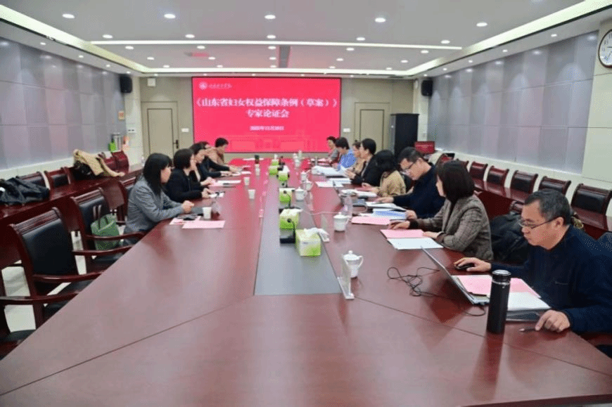 12月26日上午,由社会发展学院张雅维教授主持的省妇联横向课题项目组,在学校召开《山东省妇女权益保障条例(草案)》专家论证会。省妇联党组成员、副主席盛淑慧及权益部负责人出席论证会,省人大及山东大学、山东师范大学、山东政法学院、济南大学的专家学者参会。党委书记吕晓黎,党委副书记、校长李光红热情会见了与会来宾。
