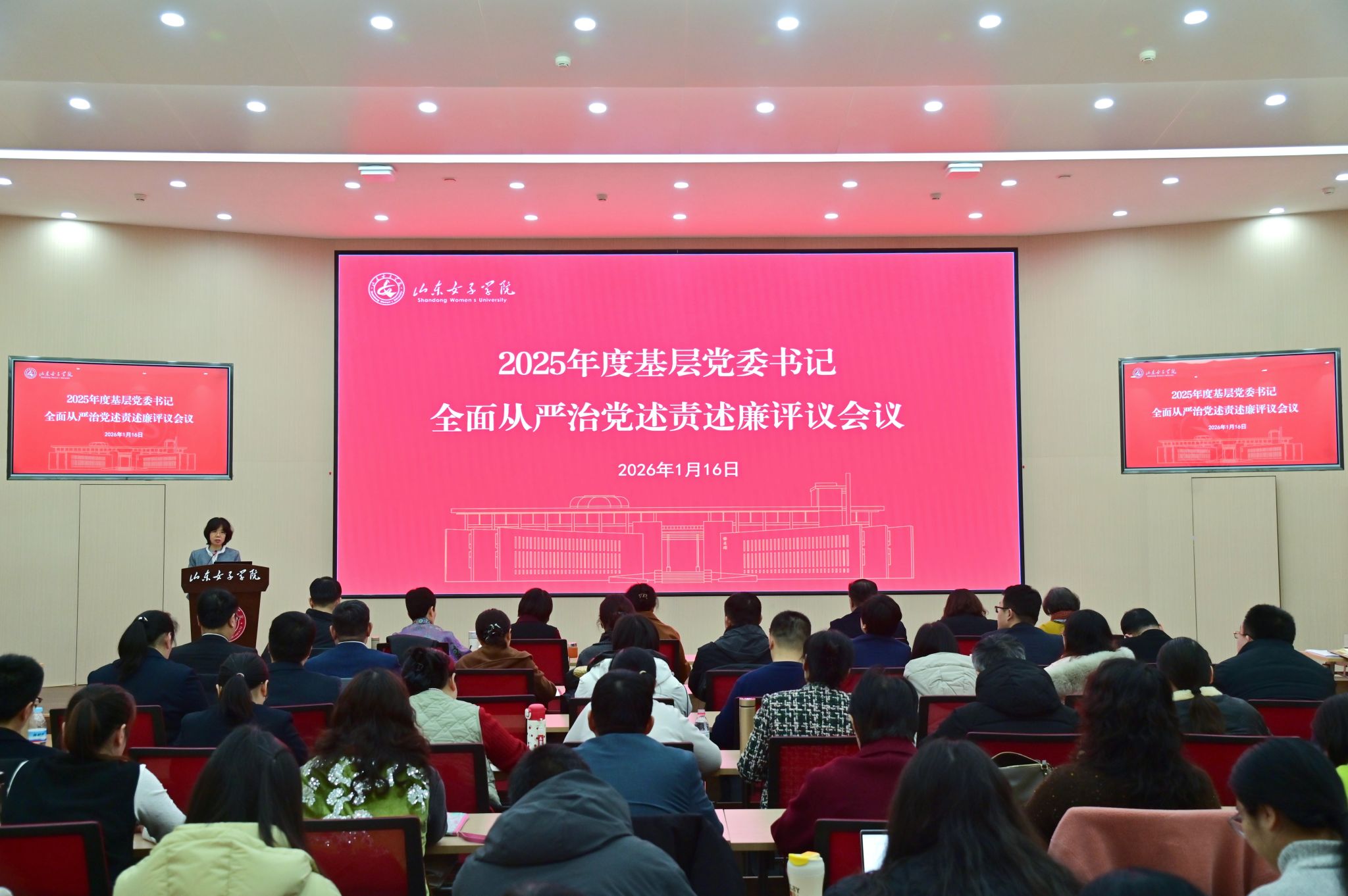 1月16日上午,学校在求真楼报告厅召开2025年度基层党委书记全面从严治党述责述廉评议会议。党委书记吕晓黎主持会议并作点评讲话,党委副书记、校长李光红,党委副书记龙希利,党委委员、纪委书记、监察专员杨恩红,党委委员、副校长李缨,党委委员、副校长田立新,党委委员、统战部部长李君,党委委员、宣传部部长王鲁,党委委员、组织部部长王鹏出席会议。