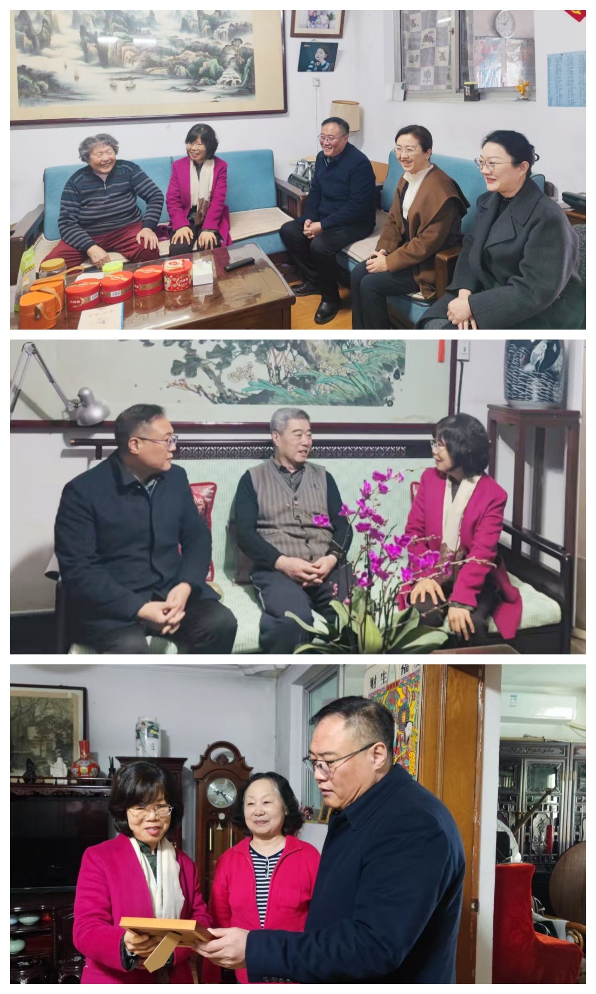 会前吕晓黎、龙希利慰问走访了退休校领导及老党员、老教授代表。