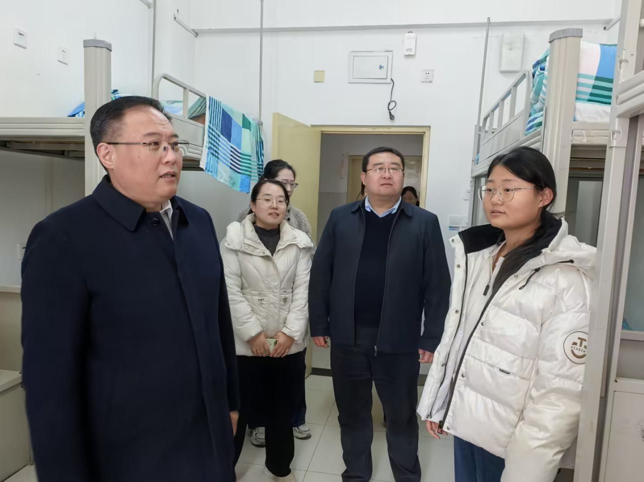 龙希利实地查看公寓环境卫生、设施设备、安全及服务保障情况,现场听取学生工作处关于学生返校报到、返校后思想动态摸排、新学期思政教育安排、公寓日常管理服务等工作汇报,详细了解各环节筹备细节,并就细化管理、优化服务提出具体要求。