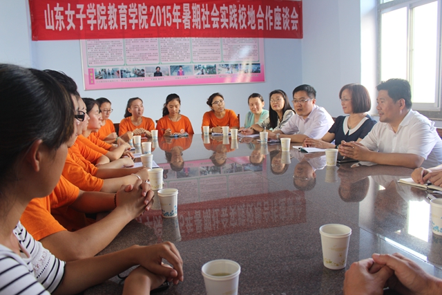 7月21日,我校教育学院2015年暑期社会实践校地合作座谈会在长清区万德镇马套村村委会议室举行。学校副院长王淑霞、万德镇党委书记亓明、万德镇党委副书记张士磊、镇团委书记滕桂林出席座谈会,教育学院负责人和暑期社会实践带队教师及学生志愿者代表参加了本次座谈。