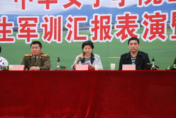 9月11日,伴着绵绵细雨,我院2009级新生军训汇报表演暨总结表彰大会在操场隆重举行。学院党委副书记兼纪委书记王光芝,党委委员、副院长尹桂瓒,各处室院部负责人,军训教官,全体辅导员及2009级新生参加了大会。