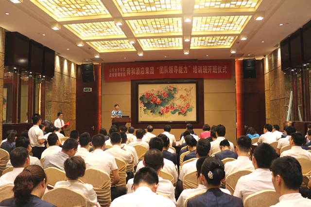 开班仪式上,范素华首先对舜和酒店集团对学校的信任与支持表示衷心感谢,并指出,此次培训班丰富了双方校企合作的内容,标志着双方的合作还有很大的、很广阔的开拓空间;双方应进一步凝聚共识、形成合力,把校企合作作为一项重要的事业来做,把它做实、做深、做好,共同培养社会欢迎的人才,为经济社会的发展作出应有的贡献。徐红军代表舜和酒店集团致欢迎词,他肯定了多年以来双方密切友好的校企合作关系,并对山东女子学院为舜和酒店集团举办培训班表示感谢。他表示,此次培训是校企合作的一个新亮点,标志着集团与山东女子学院的合作掀开了新的一页。