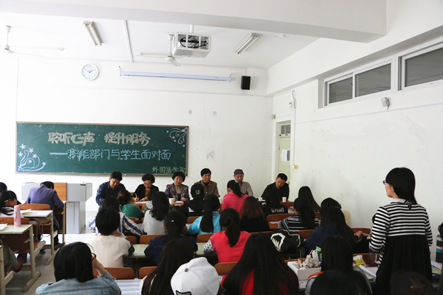 4月14日下午,学校学生工作处、团委、教务处、后勤处、科技产业处在博学楼107、109教室联合开展了“聆听心声,提升服务——职能部门与学生面对面活动”,校长范素华、党委副书记宿建沛出席了活动。