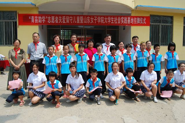 启动仪式上,宿建沛副书记及济阳县领导分别发表讲话,高度评价了此次活动的重要意义。校团委负责人为仁风镇“山东女子学院大学生社会实践基地”揭牌,并在王圈小学正式建立了“‘青苗助学’关爱留守儿童支教点”。同时我校还向王圈小学留守儿童捐赠了液晶电视、课外读物、粉笔、书包等爱心用品。参加支教活动的大学生志愿者代表与留守儿童结对交换“爱心卡”。