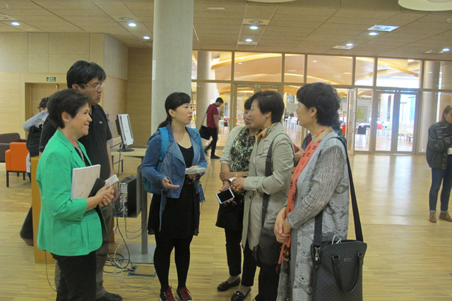 途经马德里康普顿斯大学时,郭翠芬一行还参观了该校图书馆,与图书馆负责人斯蒂娜以及工作人员安东尼奥进行了座谈。该校图书馆工作人员介绍了图书馆发展历史、馆藏,服务教学、科研情况,以及图书馆人性化设计、信息化服务等方面的特色。我校图书馆馆长朱海琳向康斯顿斯大学介绍了我校馆藏、电子资源以及图书管理情况。双方同意互赠部分反映本国历史文化、风俗民情的图书,并表示不断加强交流合作。