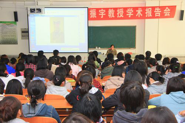 曾振宇教授从“文化多元论”的立场出发,从孔子相貌与身高、孔子与苏格拉底的对比、儒家孝论对古代法律制度之影响、孔子创建的原生儒家孝论在秦汉之后的变异、佛教与儒家的论战以及儒家孝论在“五四”新文化运动中的命运等多维度,梳理了儒家“孝”观念的发生、发展、损益、衍化的历史发展脉络,指出了儒家 “孝论”的本质和孔子“孝道”的精髓,着力阐述了以儒家为主体的中国传统文化对于建立一种全球伦理的资源意义。报告深入浅出,通俗易懂,使与会的300余名师生深受教育与启发。