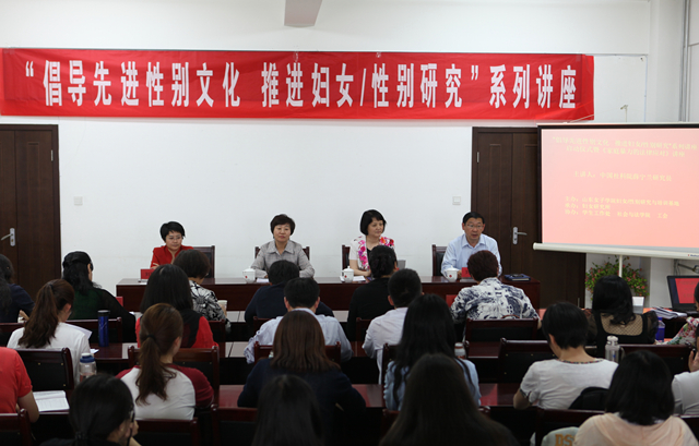 5月19日下午,由山东女子学院妇女/性别研究与培训基地主办,妇女研究所承办,学生处、社法学院、工会协办的清照讲堂•“倡导先进性别文化 推进妇女/性别研究”系列讲座启动仪式暨《家庭暴力的法律应对》学术讲座在办公楼第四会议室举行。山东女子学院党委书记郭翠芬、中国社科院社会法研究室主任薛宁兰研究员和青州市妇联主席刘瑞宏出席会议。山东女子学院科研处、妇女研究所、学生处、学报编辑部负责人以及社会与法学院80余名师生参加了会议。会议由科研处负责人主持。