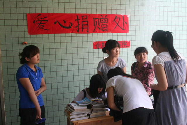 6月7日上午,由信息技术学院发起组织的2011届毕业生爱心捐献活动在学生公寓1号楼前成功举办。