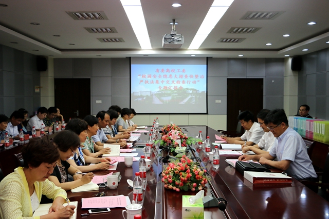 6月15日,省委高校工委安全检查组莅临我校检查指导工作,检查组由潍坊学院副院长赵光强、潍坊学院保卫处处长杨文亭、潍坊职业学院保卫处处长吴承波一行3人组成。校长范素华、副校长刘正林出席汇报会。学校相关职能部门负责人、各二级学院党总支书记参加会议。