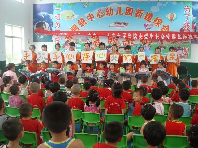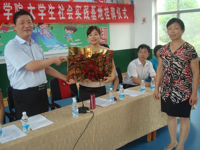 为深入贯彻落实团中央和校团委关于大学生社会实践的有关文件精神,使青年学生在实践中“受教育、长才干、作贡献”,7月7日至13日,教育学院“爱之翼”社会实践团一行26人来到济南市历城区王舍人镇冷水沟村及平阴县东阿镇等地,开展了为期7天的“爱心编织五彩梦,农家开遍幸福花”暑期“三下乡”社会实践活动。校党委委员、副院长贺兴利为我校在东阿镇中心幼儿园的“大学生社会实践基地”授牌,教育学院党总支书记出席挂牌仪式。