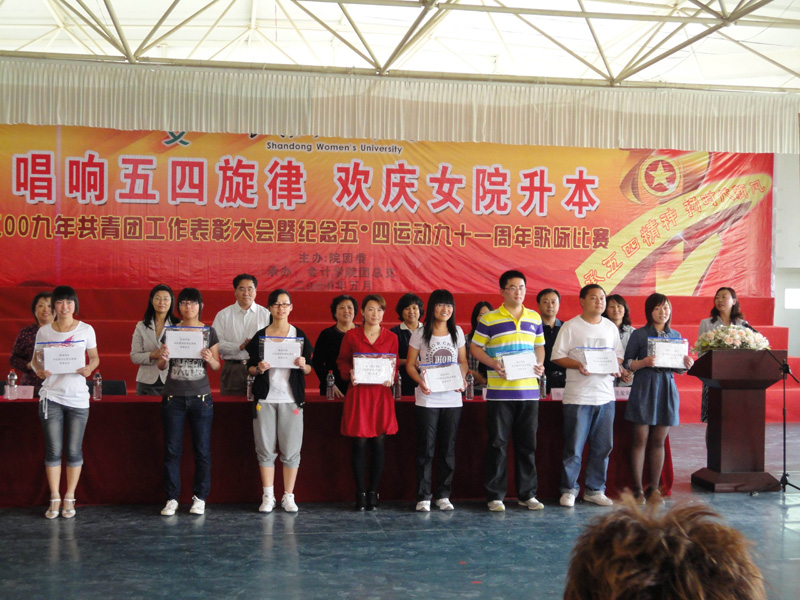为隆重纪念“五四”运动91周年,继承和弘扬“五四”精神,展现我校学生热爱祖国、朝气蓬勃、健康向上的精神风貌,5月13日下午,我校举行了“唱响五四旋律 欢庆女院升本”共青团工作表彰大会暨合唱比赛,党委书记孙秀丽,党委副书记、院长范素华,党委副书记、纪委书记宿建沛以及各二级学院分管学生书记出席并观看了比赛。表彰大会由团委副书记李丽华主持。
