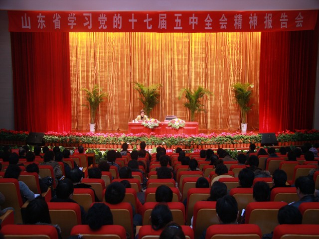 12月17日下午,党的十七届五中全会精神宣讲报告会在我校图书楼报告厅举行,山东省学习贯彻党的十七届五中全会精神宣讲团成员、省委高校工委副书记邢善萍为驻长清大学园区高校作宣讲报告。学校领导孙秀丽、范素华、宿建沛、王淑霞、宋兆静、汪琦、贺兴利,驻长清大学园区8所高校校级领导、中层干部和我校师生代表380余人参加了报告会。报告会由我校党委书记孙秀丽主持。