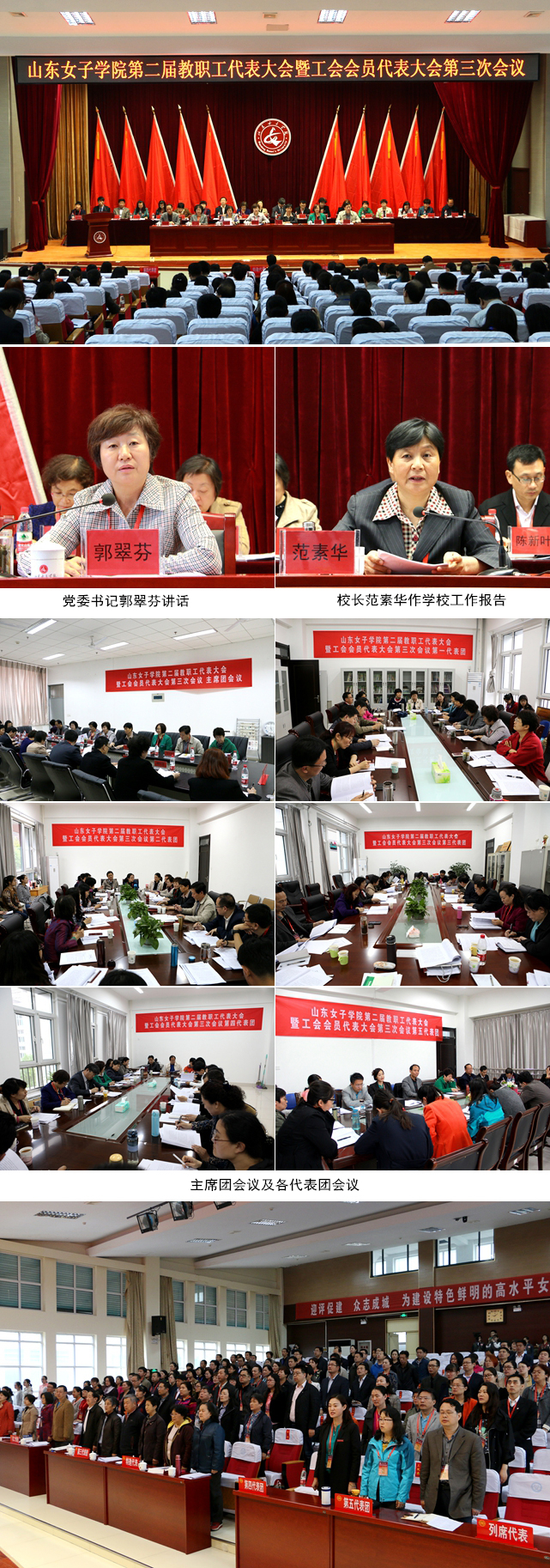 分组讨论之后,按照预定议程举行第二次全体代表会议。经过全体代表的认真讨论和审议,会议通过了《学校工作报告》《山东女子学院中长期发展战略暨“十三五”事业发展规划》《工会工作报告》《财务工作报告》决议(草案)。