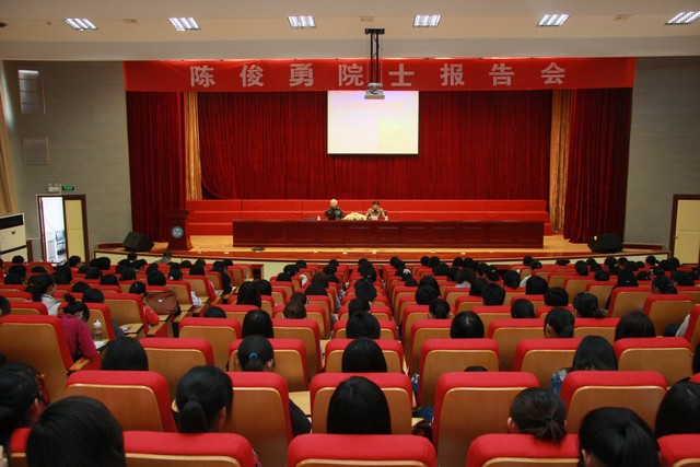 下午3时,陈俊勇院士在图书馆二楼报告厅为师生做了题为《四十年来中国珠峰高程测量》的学术报告。报告会由范素华院长主持。