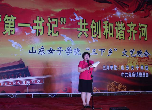 我校副书记宿建沛,党委组织部、校团委、会计学院党总支负责人以及齐河县的有关领导出席文艺演出。宿建沛副书记为在“第一书记”所对口支援的齐河县焦庙镇张村街社区建立的我校大学生暑期“三下乡”社会实践基地授牌。组织部部长为文化书屋授牌。本次文艺演出,配合支持了“第一书记”的工作,拉近了山东女子学院与美丽齐河的距离,丰富了当地百姓的文化生活,也让参加队员在实践中受到教育,增长才干,与“第一书记”及当地百姓一起为建设和谐齐河做出贡献。