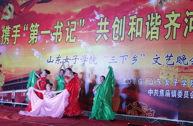 7月11日,山东女子学院会计学院科技文化下乡队在德州齐河焦庙镇举办了以“携手‘第一书记' 共创和谐齐河”为主题的暑期“三下乡”社会实践文艺晚会,将本次社会实践活动推向高潮。