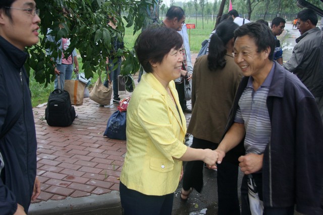 上午7时许,校党委书记孙秀丽来到迎新现场,迎接第一辆满载新生的校车进校。随后,其他校领导范素华、宿建沛、王淑霞、汪琦相继来到现场,欢迎远道而来的新生和家长,慰问迎新工作人员,指导迎新工作。