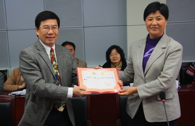 10月25日上午,我校第三会议室掌声阵阵,著名妇女理论研究专家、福建江夏学院副院长、博士生导师叶文振教授应邀来到我校, 应聘为我校客座教授并作学术报告。学校党委副书记、院长范素华致欢迎辞并向叶教授颁发聘书。党委委员、副院长宋兆静参加了报告会。学校各院部、各部门负责人及教师聆听了此次报告会。