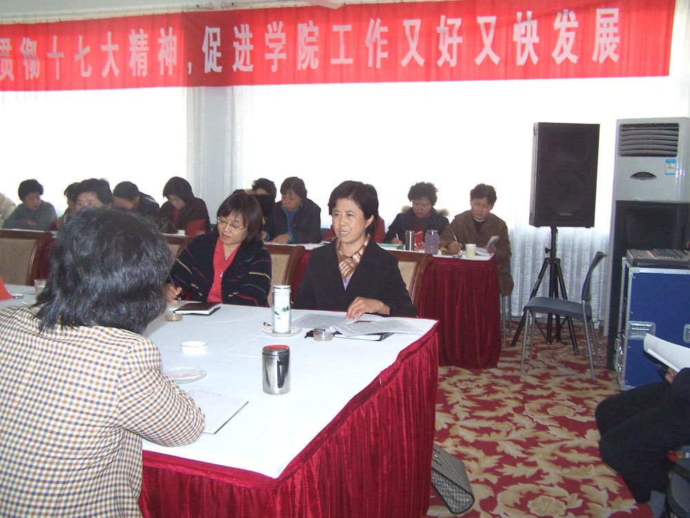 大家一致认为,促进妇女发展是中国特色社会主义的必然要求,扩大妇女受教育的规模,提高妇女教育程度和质量,这对妇女与社会都具有越来越重要的意义和作用。党中央号召全党全社会都要树立马克思主义妇女观,落实男女平等基本国策,促进妇女发展,建设和谐社会;具体到我们办女子高等教育,就是要在培养妇女人才、研究妇女理论、宣传马克思主义妇女观和男女平等基本国策方面做出更大的贡献。我们要从落实科学发展观、构建社会主义和谐社会的高度,从办好让人民满意的教育、建设人力资源强国的高度,从贯彻男女平等基本国策、全面促进妇女发展的高度,充分认识发展妇女教育事业的意义。要把学习贯彻党的十七大精神的成果转化为推进学院整体发展的强大动力,不断完善、积极推进以服务为宗旨、以就业为导向的人才培养模式的改革,沿着质量与特色相统一的办学道路又好又快发展,为早日建成山东女子学院而努力奋斗。