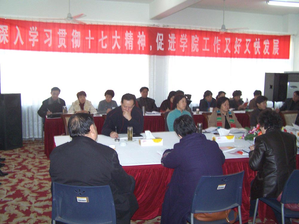 我们学院党委把学习贯彻党的十七大精神作为当前和今后一个时期的首要的政治任务,全面发动,周密安排,层层抓好落实。在总体学习领会精神实质和思想内涵的基础上,及时进入分专题深入学习阶段。