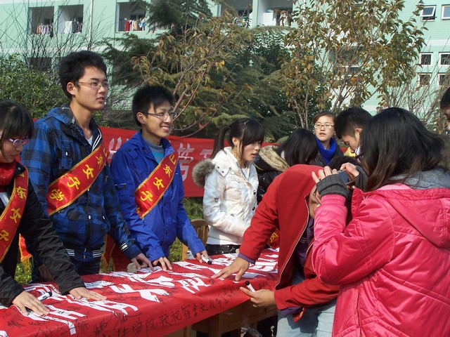 11月16日,由学生处主办、校大学生自律委员会承办的第五届大学生宿舍文化节启动仪式暨“温馨家园·和谐女院”大型签名活动在校餐厅西门举行。本次签名活动吸引了数千名同学和老师的热情参与,大家纷纷签名留言,表达对建设温馨宿舍、和谐校园的美好祝愿。