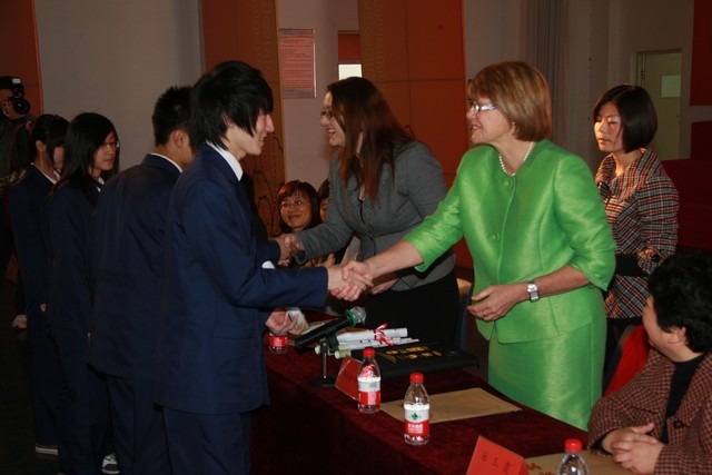 范素华院长首先代表学校对前来参加典礼的澳大利亚客人和来宾表示热烈欢迎,向即将赴澳的留学生致以美好祝愿,向新一届学生表示热烈欢迎,并对中澳全体教职工的辛勤劳动表示慰问。玛丽安·沃什女士和外教代表罗伊·韩先生在典礼上分别致词,衷心祝贺第十五届学生能够以优异成绩顺利毕业赴澳学习,对毕业生和新生提出了殷切期望。昆士兰州教育部代表梅根·龙向毕业生全优奖获得者李晓彤颁发了奖牌与荣誉证书,与会领导向毕业生颁发了证书。会上,毕业生、新生及毕业生家长代表分别作了发言。