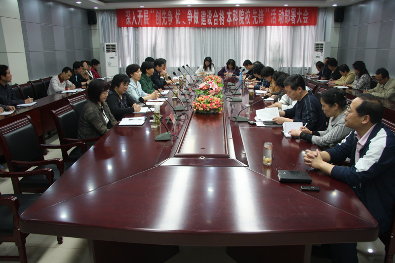 5月5日,我院在第三会议室召开“创先争优、争做建设合格本科院校先锋”活动部署大会,传达中央和省委关于深入开展创先争优活动的有关精神,对我院深入开展创先争优活动进行动员和部署。党委书记孙秀丽,党委副书记、院长范素华,党委副书记兼纪委书记宿建沛,副院长常立学、王淑霞、林玉贵、赵胜村出席大会,各党总支书记、副书记,支部书记参加了会议。会议由党委副书记、院长范素华主持。