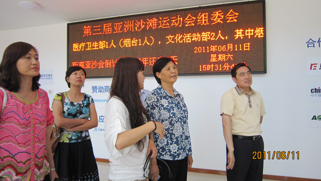 范素华院长一行受到了海阳市副市长、亚沙会组委会组长高景涛的热情迎接。座谈会上,范院长和高副市长分别对此次赴海阳志愿者提出了希望和要求。随后,范素华院长一行在高景涛副市长陪同下参观了亚沙会组委会办公大楼、志愿者宿舍等。