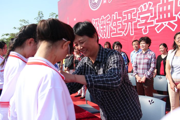 范素华院长在讲话中代表学校向新同学的到来表示热烈的欢迎,对辛勤培育他们的老师和家长表达诚挚的敬意。范院长在介绍了学校发展历史和办学情况之后,对同学们提出了殷切希望:一是希望同学们正确定位,尽快融入到大学生活中;二是希望同学们志存高远,脚踏实地,努力成才;三是希望同学们强化责任意识,做勇于担当的当代大学生。宿建沛副书记做军训动员报告,她希望同学们以饱满的爱国热情、积极的学习态度投身到军事训练中,尊重教官,服从安排,严格要求自己,接受艰苦训练,全力配合教官高质量完成训练任务。开学典礼上,举行了庄严的集体佩戴校徽仪式,学校领导为新生代表佩戴校徽,其余新生自己佩戴校徽,标志着成为女子学院这个大家庭的一员。