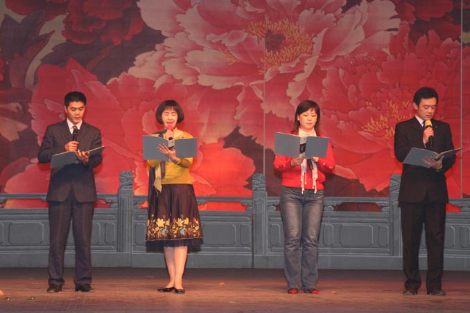 党的十七大胜利召开之后,举国上下掀起了学习宣传十七大精神的热潮。为了庆祝党的十七大的胜利召开,迎接新的一年的到来,2007年12月27日下午,由院工会主办的教职工学习宣传十七大喜迎新年文艺晚会在鲁艺剧院隆重举行。学院党委书记胡升秀,党委副书记、院长孙秀丽,副院长常立学、宋兆静、尹桂瓒,院工会主席郭黎明及各院系、部门负责人与广大教职工欢聚一堂,一同观看了本场演出。